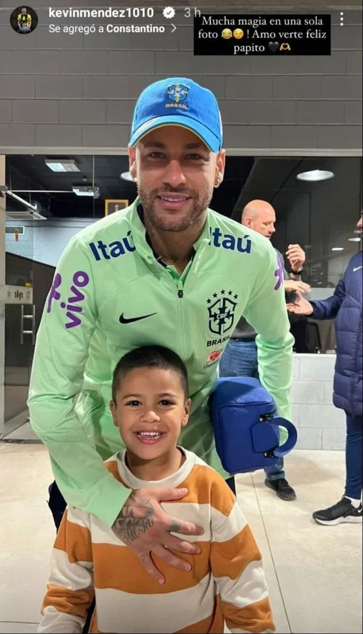 La alegría del hijo de un jugador de Peñarol al sacarse una foto con Neymar