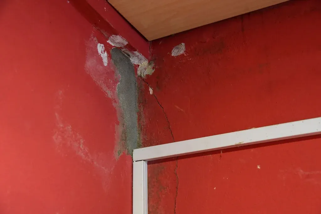 La pared de la casa de blanco sufrió una rajadura por la aplanadora