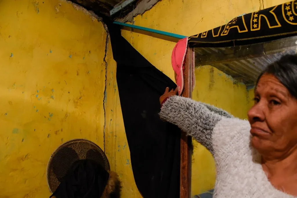 Una de las afectadas es Blanca. La pared de uno de los dormitorios de su casa está inclinada. "Esa pared está suelta. La golpeas con lo mínimo y se mueve. Y encima quedó esa rajadura de la máquina", dijo. Según Blanca, el equipo técnico del Plan de Mejoramiento de Barrios y de la Intendencia de Canelones que trabaja en el territorio "nunca entraron" a su casa.