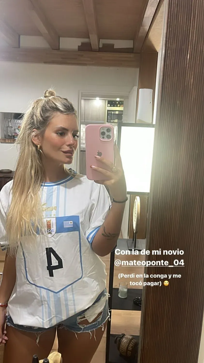 "Con la de mi novio", (@mateoponte_04) escribió la influencer posando con la número 4 de Uruguay alternativa de su pareja.