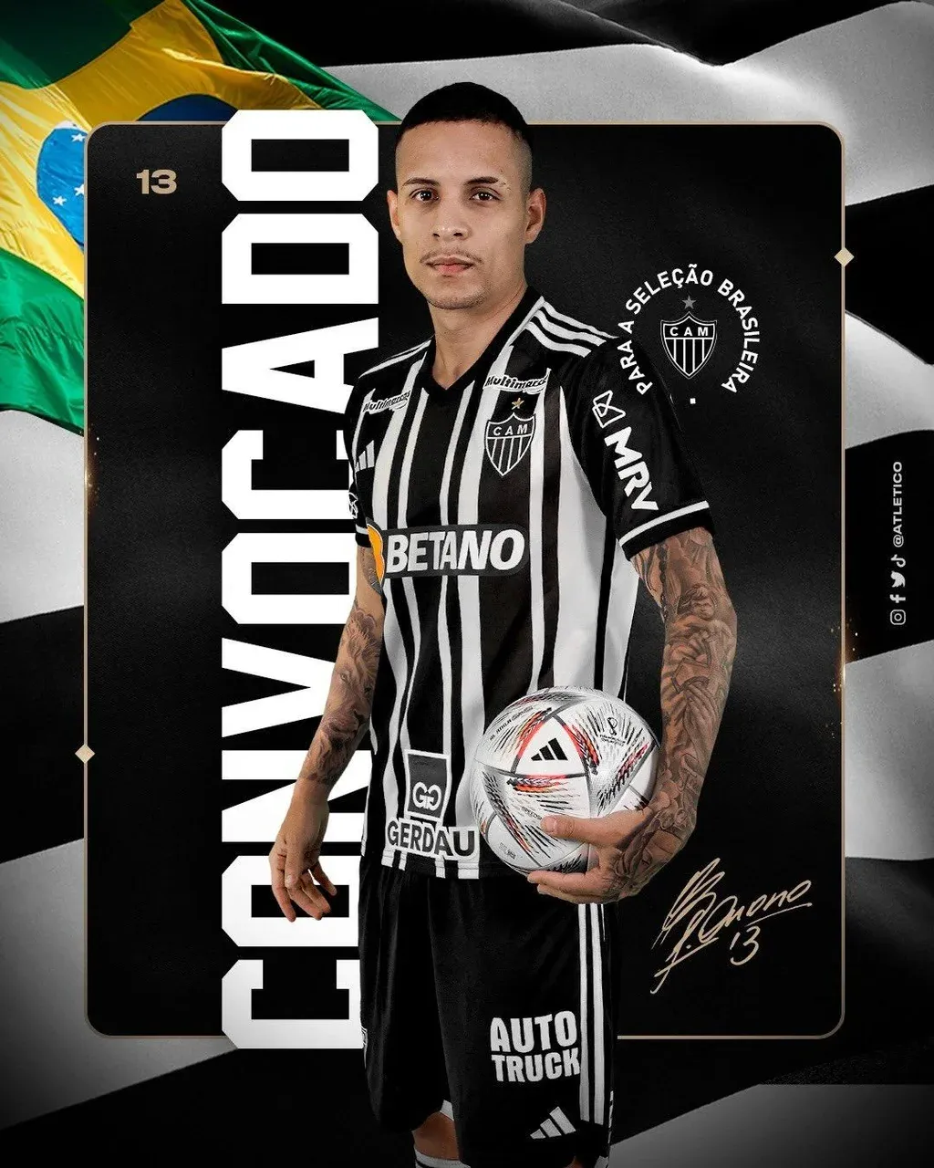 @Atletico Guilherme Arana El jugador del Mineiro regresa a una convocatoria de los pentacampeones del mundo por primera vez desde junio de 2022, cuando jugó los 90 minutos en la victoria 1-0 contra Japón en Tokio en un choque preparatorio para el Mundial de Qatar.