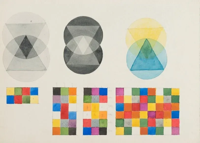 A. Körner - Gentileza IFA Atribuido a Marianne Ahfeld- Heymann. Ejercicio de las clases de teoría de la forma pictórica de Paul Klee. En el campo de las artes plásticas, por ejemplo, Vasili Kandinski y Paul Klee fueron dos referentes y maestros de la escuela que aportaron a la teoría del color y la materia dentro de nuevos cánones del arte abstracto y moderno.