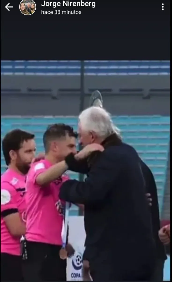 El abrazo entre Andrés Cunha y Eduardo Ache que subió el dirigente de Peñarol, Jorge Nirenberg, luego del penal pitado para Nacional ante Boston River Y terminó con el video de un abrazo entre Andrés Cunha y el neutral de la Asociación Uruguaya de Fútbol (AUF) y expresidente de Nacional, Eduardo Ache.