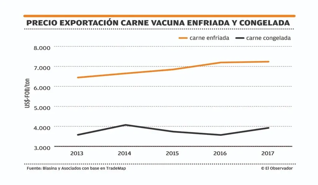 El tiempo de tránsito de Uruguay supera los 45 días, mientras el de Australia y Estados Unidos es de 20 días. “Hay que ver los riesgos y oportunidades en ese tema”, en referencia a la posibilidad de exportar carne enfriada, explicó el industrial. Una corriente que quedó también habilitada para China esta semana a través del protocolo acordado.