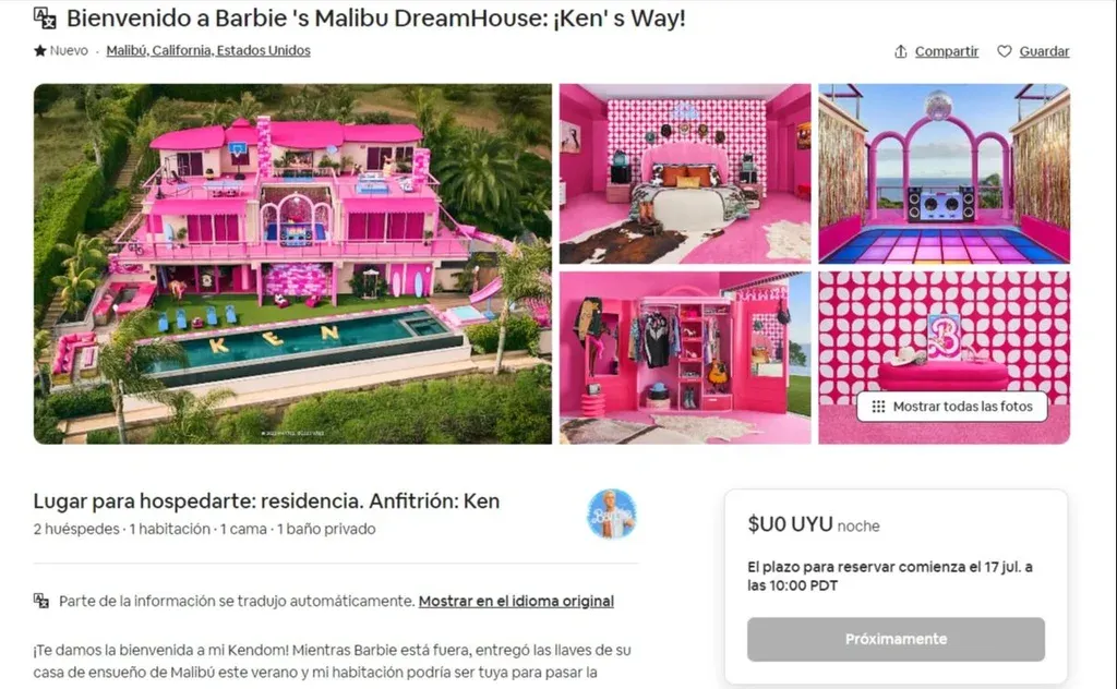 "Todas las estancias serán gratuitas, porque Ken no supo cómo ponerle precio a la Casa de Ensueño Malibú de Barbie; después de todo, lo de Ken es la playa, ¡no las matemáticas!", se especifica en la publicación y se detalla que los costos del viaje desde y hacia Malibú corren por cuenta de los usuarios.