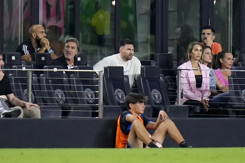 El crack argentino Lionel Messi y Benjamín Suárez, el hijo de Luis Suárez, tuvieron una charla en el partido de Inter Miami vs Monterrey de este miércoles, en el que el campeón del mundo en Qatar 2022 no pudo jugar.