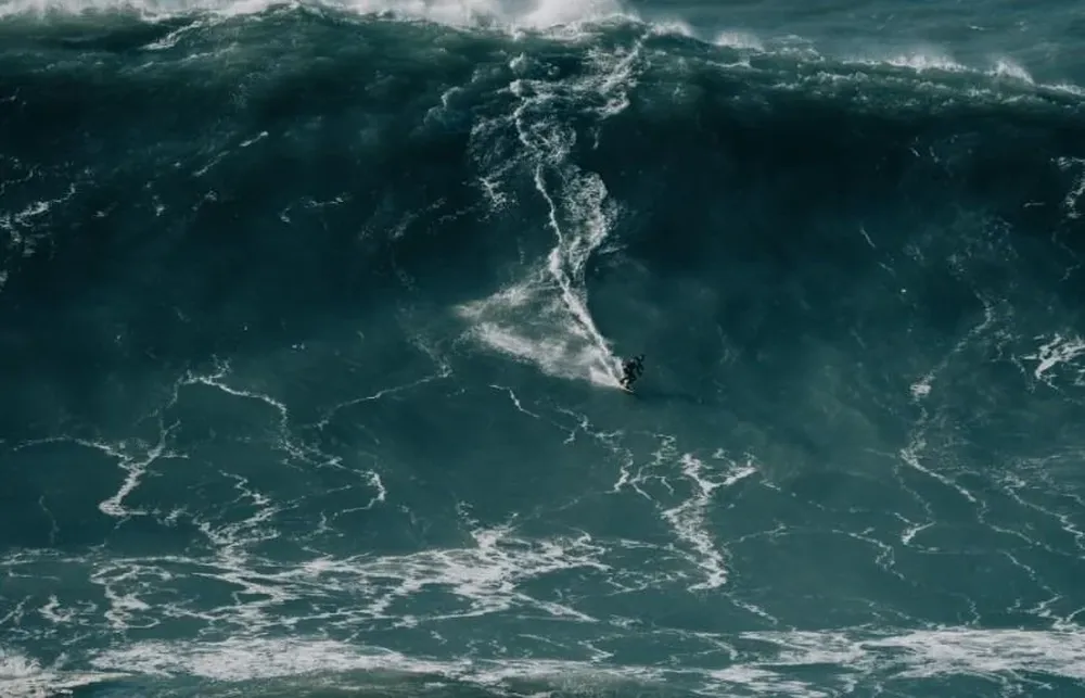 En el video de su hazaña, realizada el 29 de octubre de 2020, este surfista de cabellera rubia es un minúsculo punto negro delante de un muro de 26,21 metros, célebre desde ese día por convertirse en la persona capaz de surfear la mayor ola jamás medida.