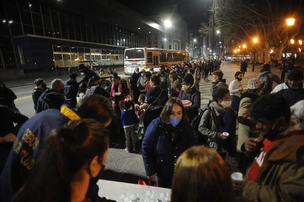 Faltaban más de 20 minutos para la hora 21 y en la Plaza de los Bomberos, sobre 18 de Julio, decenas de personas comenzaron a formar una fila esperando que llegara Sembradores, el grupo que reúne a religiosos de distintas parroquias de Montevideo y que sale a repartir comida todas las noches.
