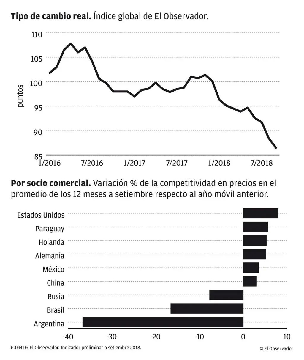 El principal motor de esta pérdida de competitividad fue el salto del dólar en el vecino país, que en el promedio de las cotizaciones de setiembre se ubicaba en 38,4 pesos argentinos, con un incremento de 123% respecto a igual mes de 2017.