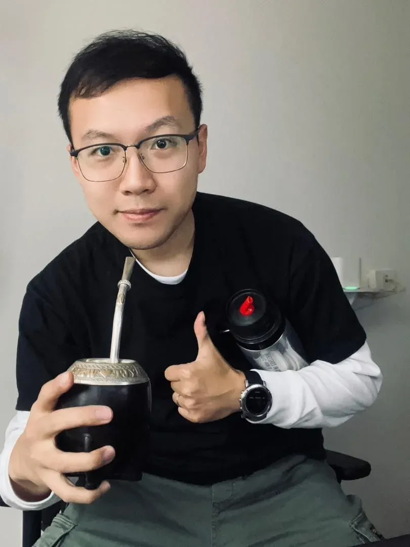 He Bowen llega a tomar dos litros de mate al día en su mate torpedo, que compró especialmente para él en Uruguay.