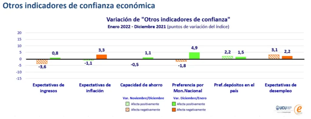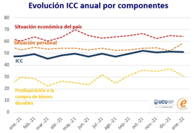 Entre los tres subídices que lo componen, dos de tres descendieron respecto a diciembre. "Esta reacción pudo deberse a la moderación del optimismo presentado en el mes anterior y a un aumento nuevamente de los casos de COVID-19, alcanzando nuevos máximos de casos diarios", explicó el informe elaborado por la Cátedra de Confianza Económica de la UCU y Equipos.