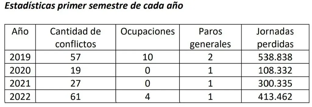 La conflictividad laboral tuvo un aumento de 45% en el primer semestre de 2022 respecto al mismo período de 2021. A su vez, la conflictividad sectorial se multiplicó dos veces y media respecto al año anterior, según el último informe elaborado por el Departamento de Estudios Organizacionales de la Universidad Católica del Uruguay (UCU).