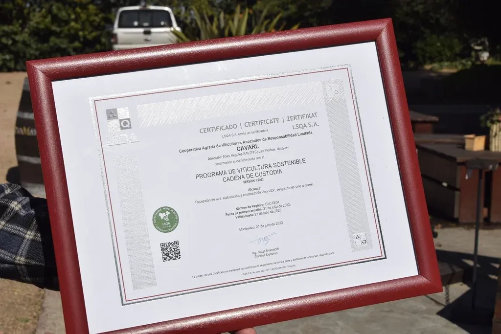 Para llegar a esta certificación la cooperativa trabajó durante tres años. Los productores se dividieron en dos grupos y fueron incursionando en la viticultura a sostenible, explicó a El Observador el enólogo de la cooperativa, Andrés Passadore. El 80% de los productores cooperativistas se certificaron y el objetivo es que para 2023 se llegue al 100% de adeptos.