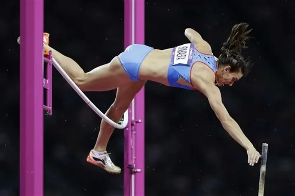 La atleta rusa, que ganó el oro en Atenas y Beijing, se tuvo que conformar con el bronce en salto con garrocha