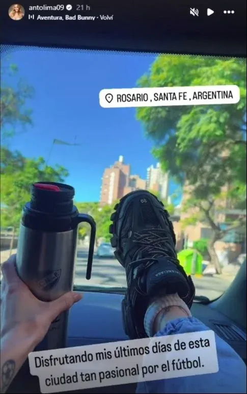 Este domingo la modelo subió una nueva historia en la que señalaba que se estaba yendo de Rosario.