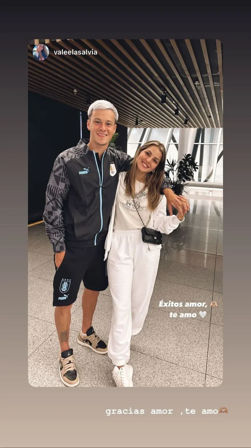 La despedida con mucho amor de Abaldo y su pareja, hija de su representante, en el viaje de la selección uruguaya sub 23