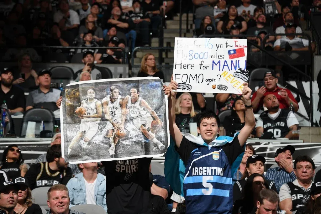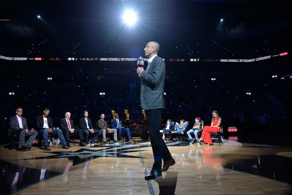 El AT&T Center de San Antonio, el escenario de tantos éxitos deportivos conseguidos por Ginóbili, nada menos que cuatro títulos de liga con los Spurs, lo recibió a los pocos meses de haber dado su "adiós" definitivo al baloncesto activo y lo hizo para reconocerle que sin él nunca hubiesen podido ser una nueva dinastía en la NBA.