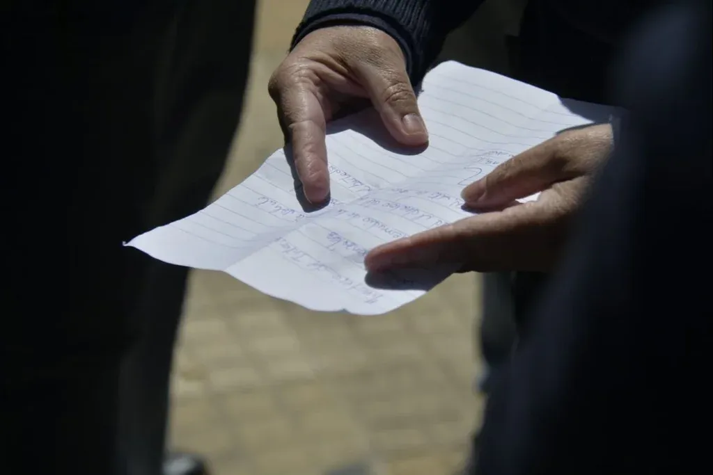 El consejero Juan Gabito firmó el pedido de desalojo, pero como el lugar donde trabaja estaba justamente ocupado, debió improvisar con un papel de cuaderno donde escribió a mano.