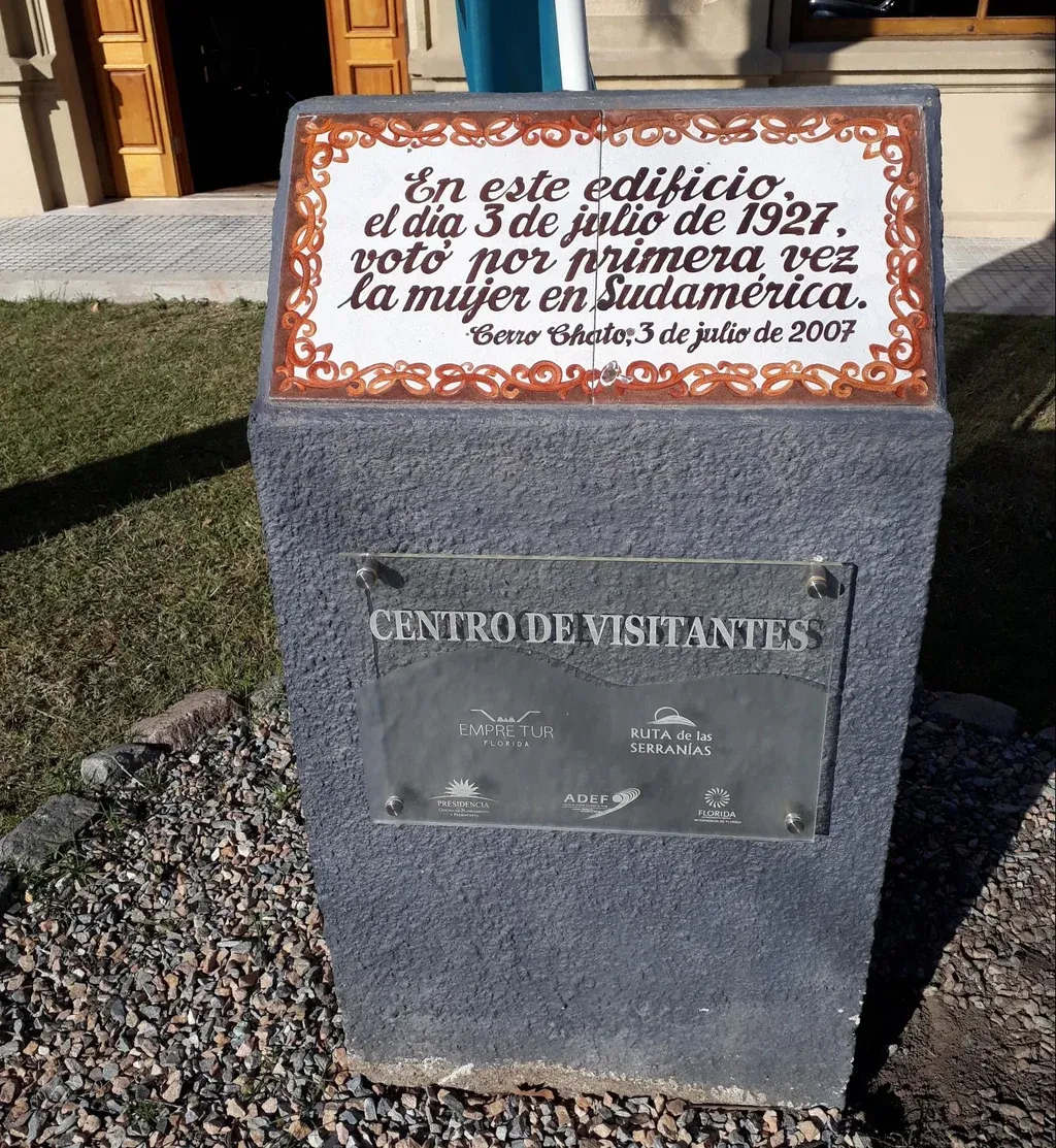 Placa en conmemoración al primer voto femenino sudamericano, en la entrada del museo.