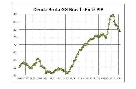 En tanto, el comportamiento de la deuda bruta del gobierno general, se había detenido en su crecimiento en los años de la presidencia de Michel Temer y al inicio de la de Jair Bolsonaro, pero dio un salto considerable en 2020 y ahora muestra un retroceso importante, volviendo a ubicarse por debajo del 80% del PIB.