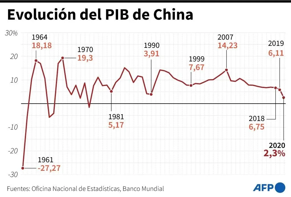 Para todo el año 2020, China registró un crecimiento de 2,3%.