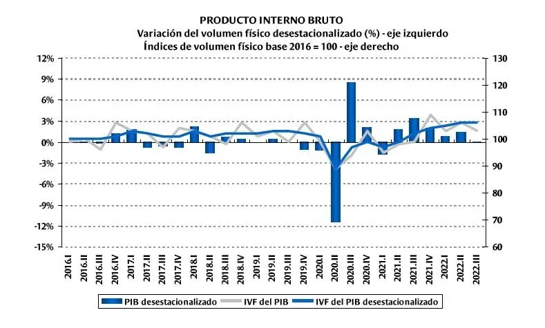 El Producto Interno Bruto (PIB) se mantuvo en guarismos similares a los del trimestre inmediato anterior (abril-junio), es decir en términos desestacionalizados.
