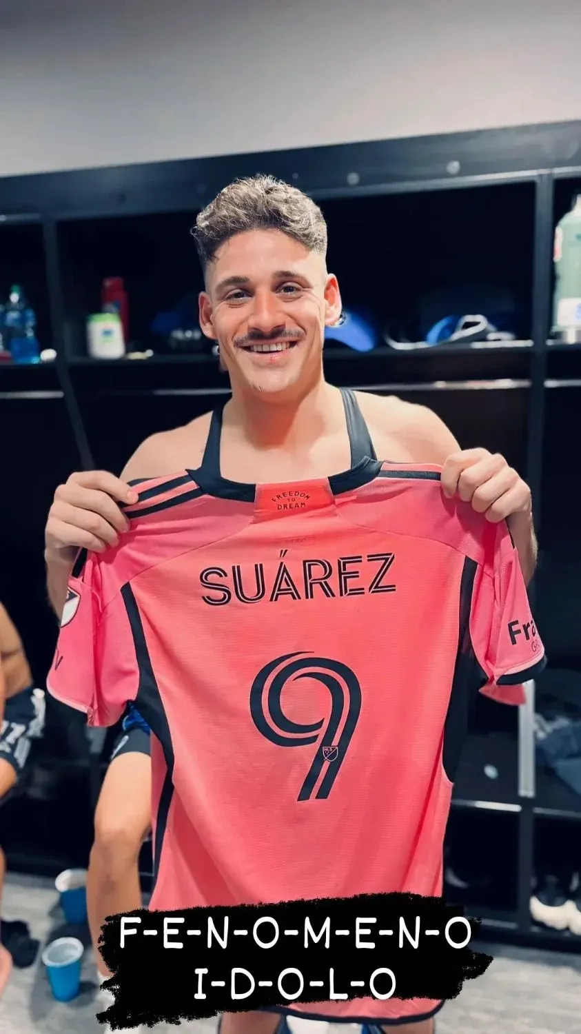 El delantero compartió fotos con Suárez en sus redes: "El que puede, puede", comentó y en otra, con la 9 del salteño, expresó "Fenómeno, ídolo"