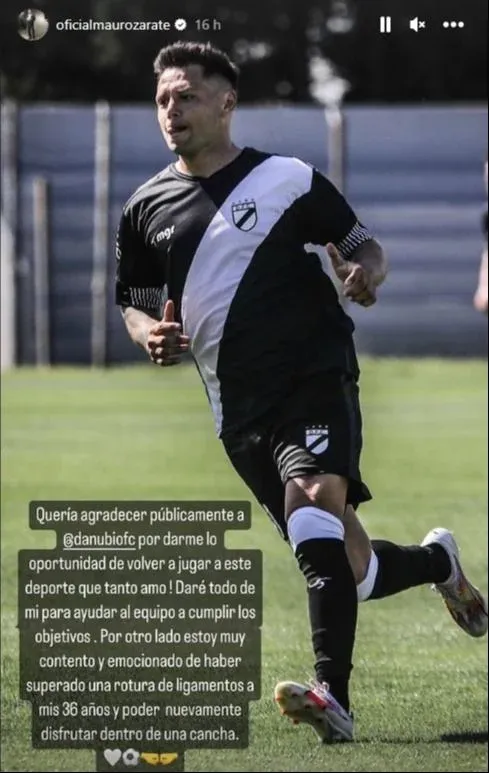 Tras el partido, Zárate publicó este lunes un mensaje de agradecimiento, en el que manifestó su emoción por volver a jugar.