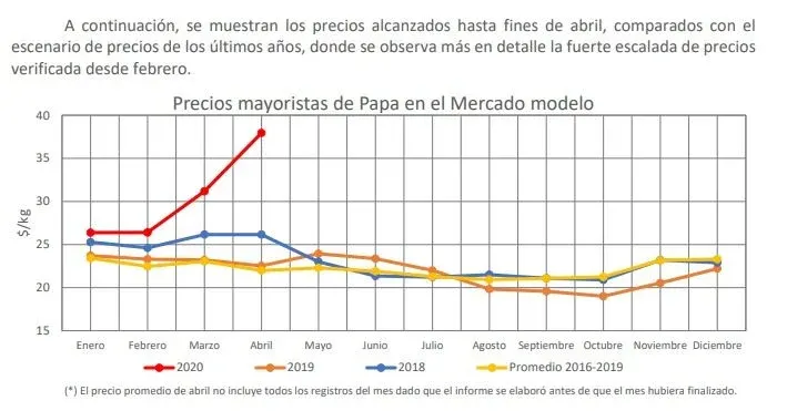 Motivados por los precios relativamente altos y a diferencia de lo que esperaban algunos referentes del sector consultados, se adelantó la comercialización de las primeras partidas de papa nueva correspondientes a la zafra de otoño, comenzando en abril y no en mayo. Los atrayentes precios de comercialización del rubro generaron que se volcaran a la venta partidas con importantes signos de inmadurez, aunque su calidad comercial fuera todavía baja.