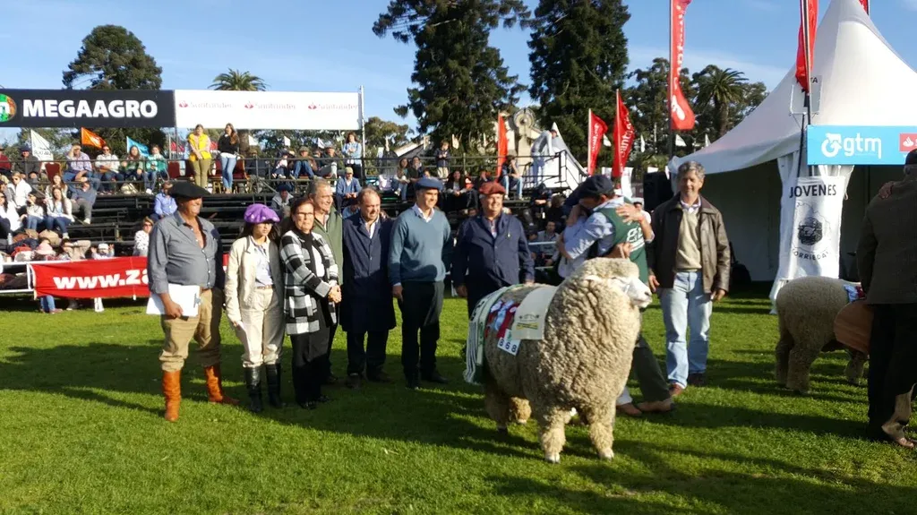 Con un estupendo carnero, el brete 868 –165 kilos y 34,6 micras–, cabaña La Estela, de Jorge Rodríguez Britos (de Risso, Soriano), logró este martes en el ruedo de la Rural del Prado el premio al Gran Campeón en la jura de los ejemplares de pedigrí en la pista del Corriedale, la raza de mayor impacto en la majada nacional.