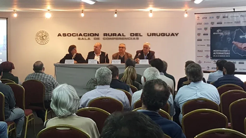 En la conferencia se mostró la imagen que caracterizará a la próxima Expoactiva: la mano de un productor sobre el mapa de Uruguay y sobre esa mano una llave cayendo, junto a la frase “Incertidumbre & Alternativas”.