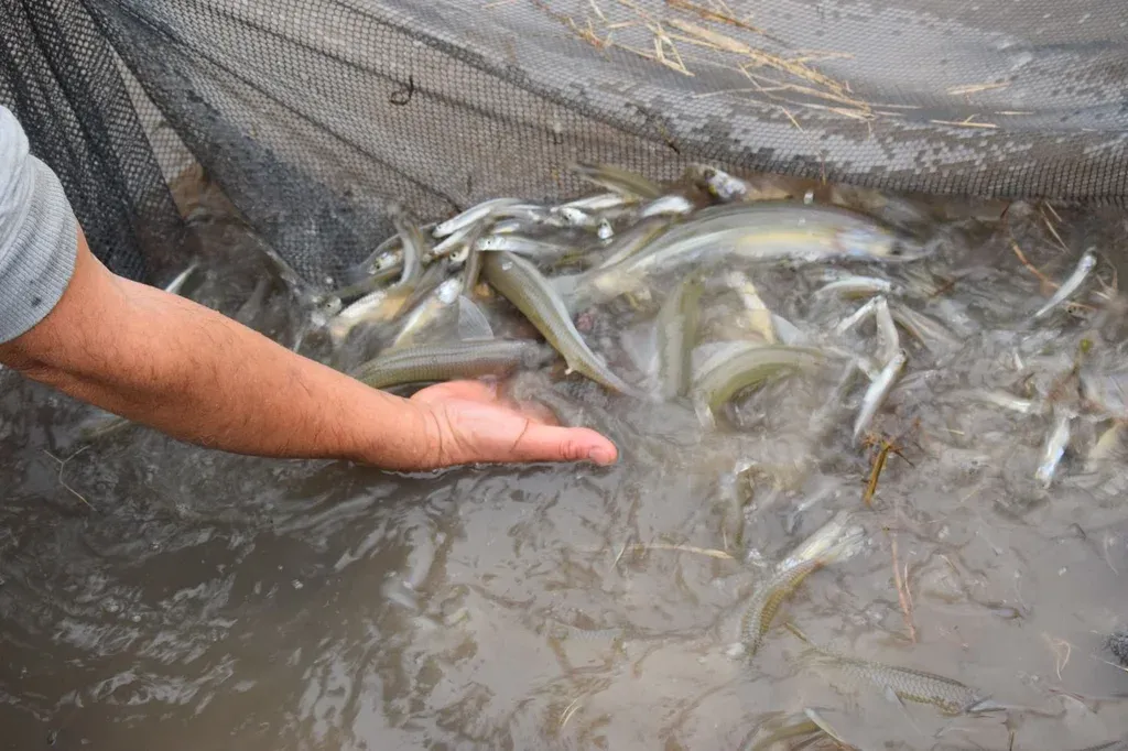 Para dar lugar a la siembra en tajamares se trabajó inicialmente con carpa hervíbora, conocida popularmente como salmón siberiano, una especie exótica pero no invasora, muy eficiente como controladora de vegetación en tajamares para riego, pero también comestible.
