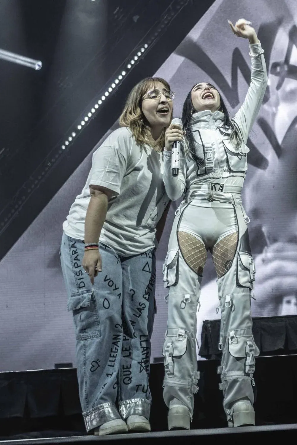 Marcos Mezzottoni Martina cantando junto a Nicki Nicole en el show del sábado en el Antel Arena. Cartel, regalo y sorpresa