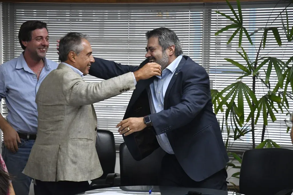 Presidente y vicepresidente de la AUF, Ignacio Alonso y Gastón Tealdi, reciben a Alejandro Ruibal, director de Saceem