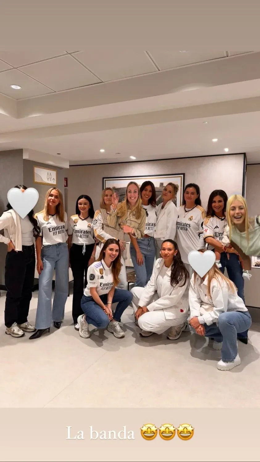 Además, compartió una foto grupal junto a las otras parejas de los jugadores del club español. "La banda", señaló.