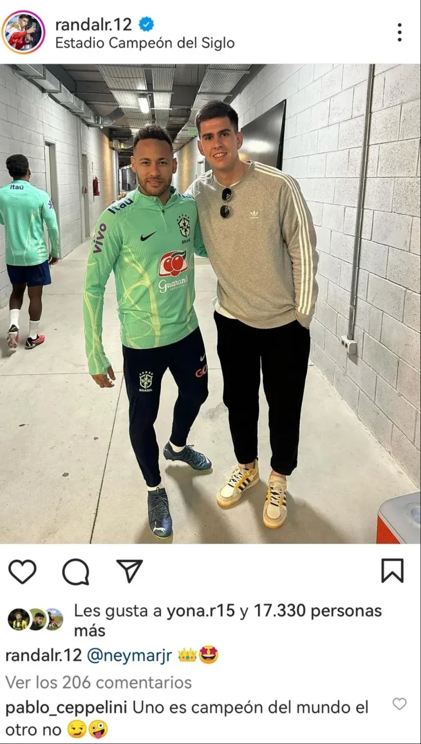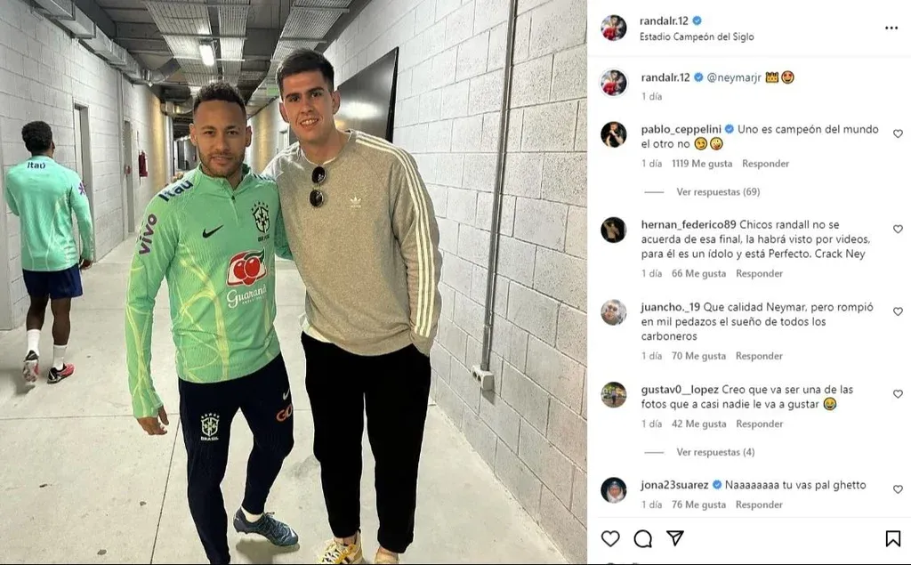 Instagram La foto de Randall Rodríguez con Neymar “Uno es campeón del mundo el otro no”, escribió, con emojis de risas.