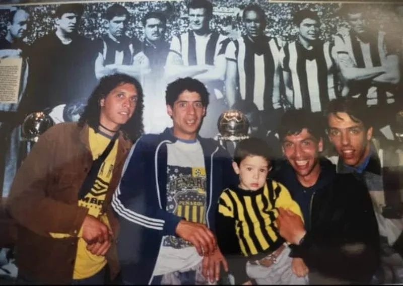Allí, Ruglio aparece muy joven con un grupo de amigos e hinchas de la institución carbonera.