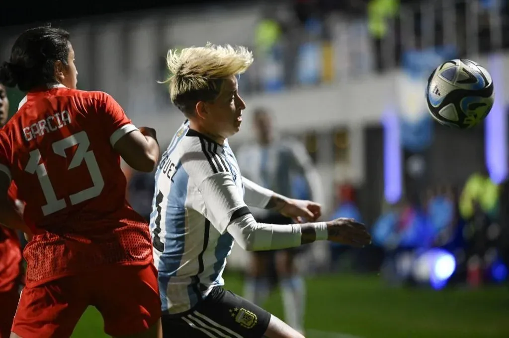 "Creo que ganar un partido en el Mundial ya es demasiado porque en todas las ocasiones que le tocó estar Argentina nunca ha ganado", señala la goleadora del cabello corto con teñido rubio a la moda y tatuada en un brazo con Diego Maradona y en una pierna con Cristiano Ronaldo.