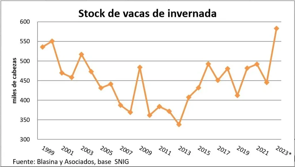 La merma en el stock de vacas de cría se da en un contexto de estabilidad en la cantidad de hembras adultas. Lo que pasa es que por la sequía muchas vacas no se preñaron.