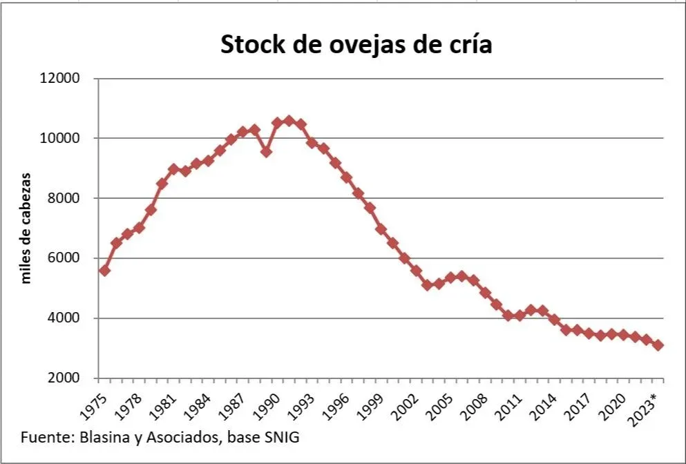 De todos modos el futuro del sector ovino sigue siendo incierto. Mientras el stock ovino cae 4,6%, el de ovejas de cría lo hace aún más, 5,9%.