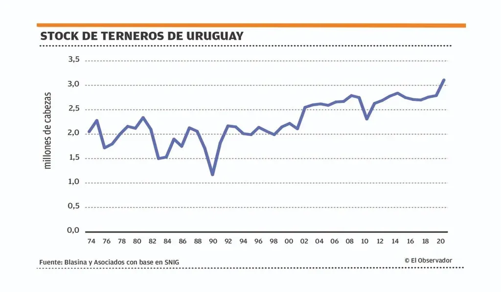 Se añaden cabezas en el rodeo –considerando que los terneros y terneras que no se faenan pasan a ser novillitos y vaquillonas– y hay una población récord de estos animales nacidos en la primavera pasada que están llegando al año de vida.