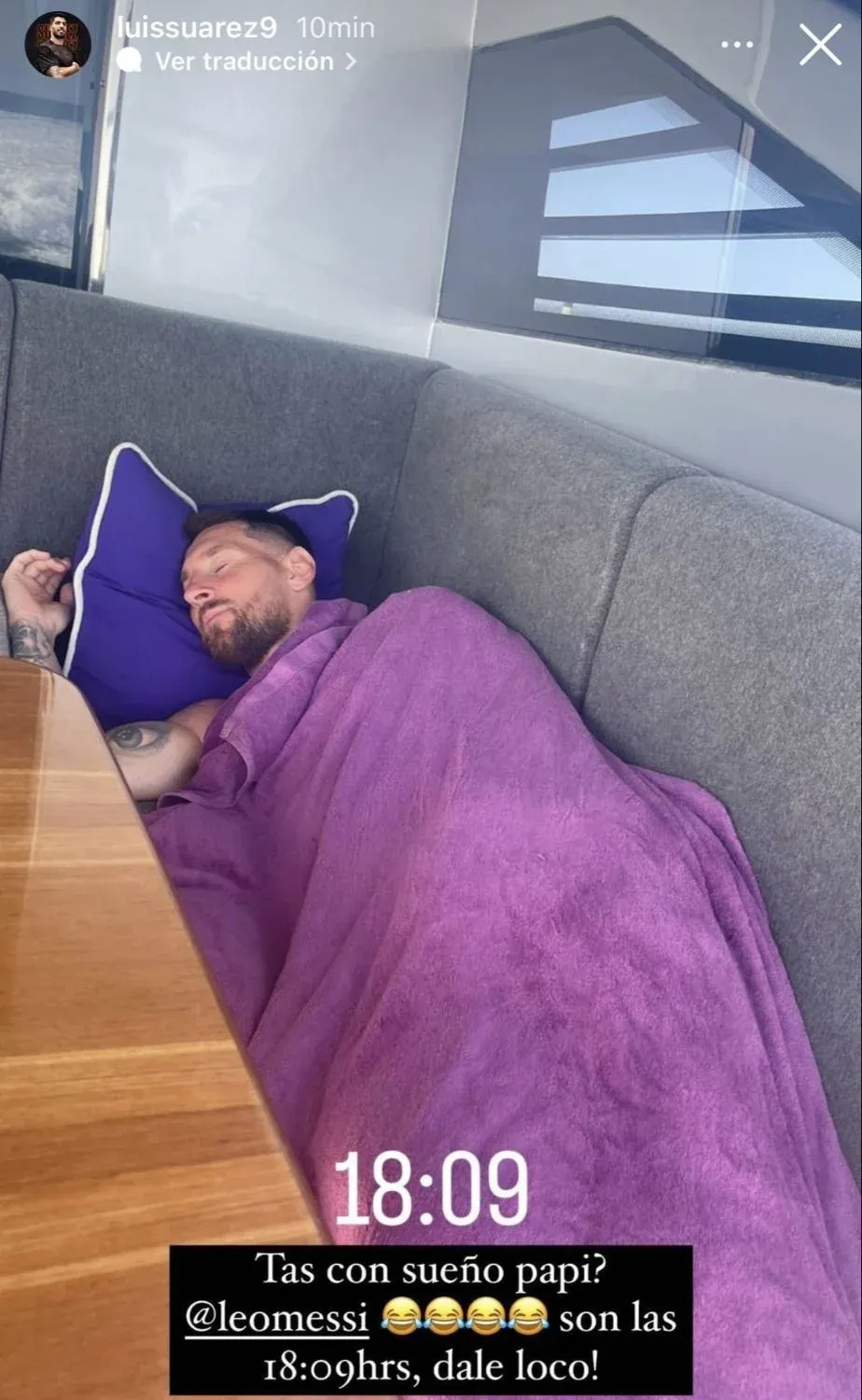 Suárez le tomó una fotografía durmiendo en un sofá y escribió: "18.09. Tas con sueño, papi? Son las 18.09. Dale loco!".