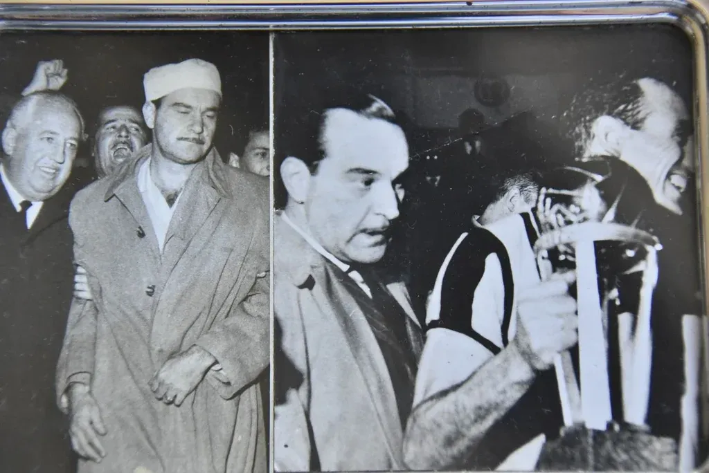 A la izquierda, Guelfi luego de recibir un proyectil en la cabeza ante Olimpia en 1961 en Puerto Sajonia; a la derecha, con la primera Copa Intercontinental de un equipó uruguayo, Peñarol, en 1961