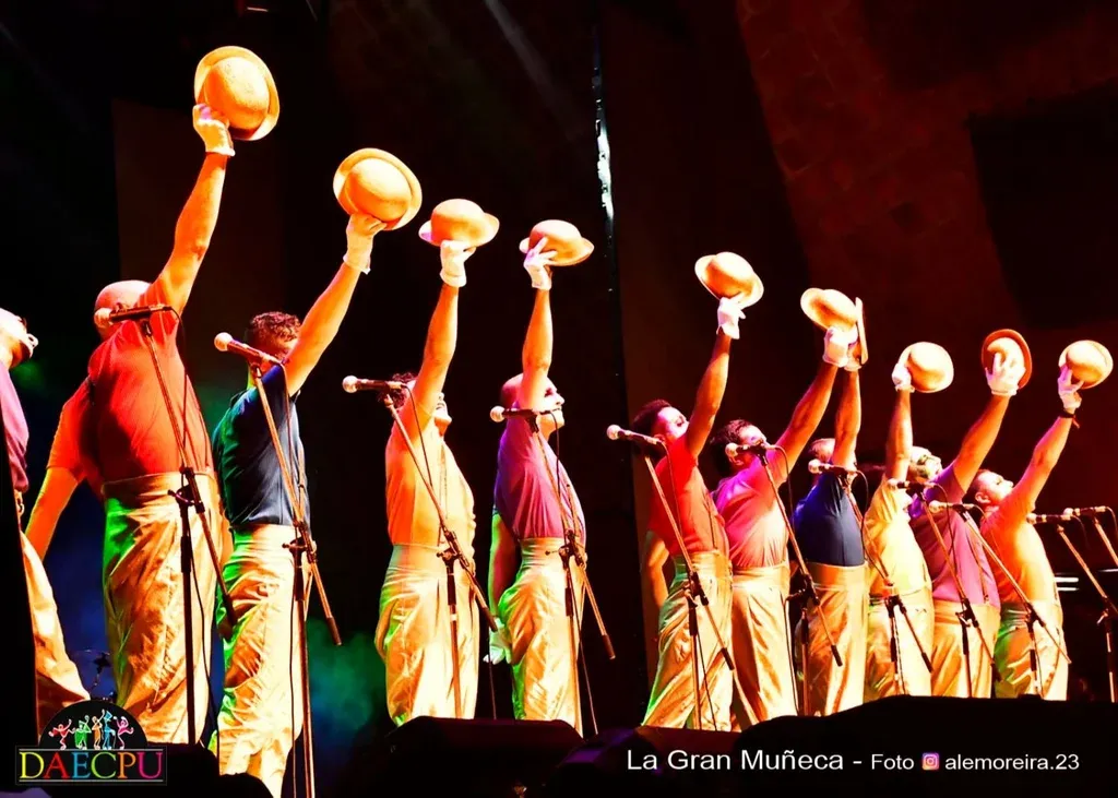 El cuplé de Los Mimos, uno de los momentos del show de 45 minutos con el que la murga La Gran Muñeca debutó en el concurso de agrupaciones de carnaval, fue uno de los instantes sobresalientes en la primera rueda de esta competencia que se desarrolla en el Teatro de Verano.