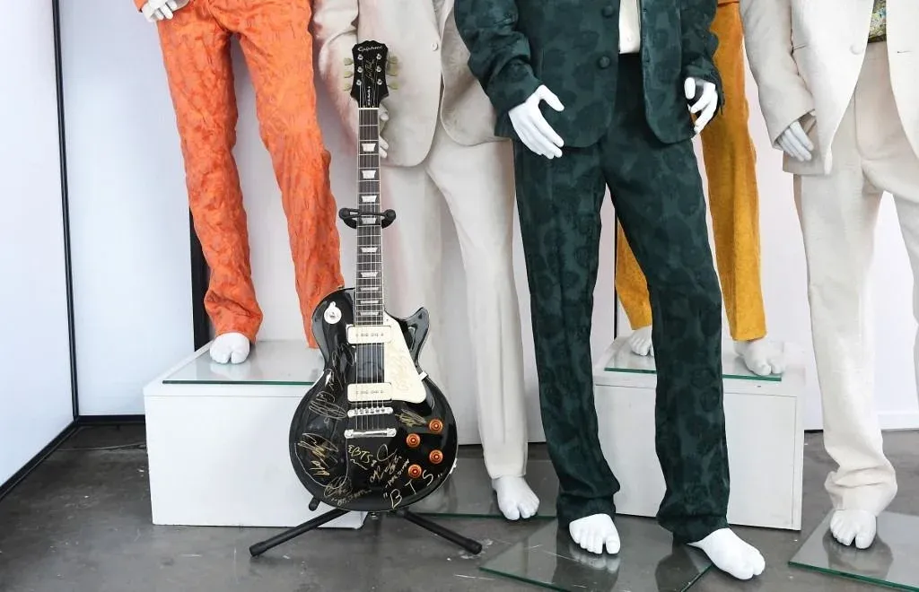Una Epiphone Les Paul autografiada junto al vestuario de Dynamite, la presentación de BTS en los Grammy