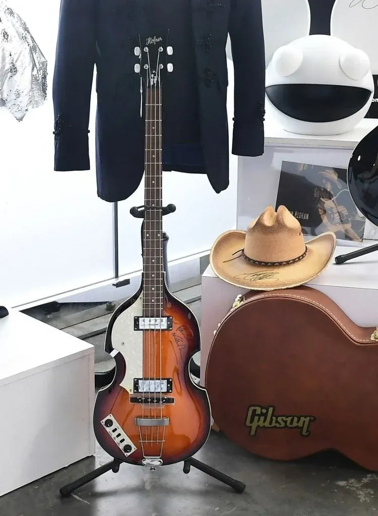 El bajo Hofner de Paul McCartney es el mismo tipo del que utilizó durante el último concierto de la banda en la azotea de su estudio de grabación en el edificio de los Apple Corps, en Londres, en 1969. La presentación completa apareció por primera vez en The Beatles: Get Back, el documental de Peter Jackson para la plataforma Disney+.