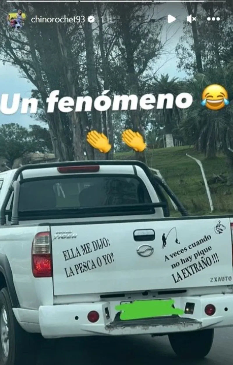 Rochet fotografió una camioneta pick up que en su parte posterior tenía un mensaje.