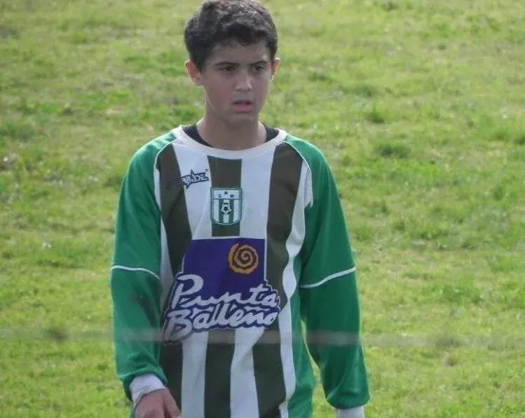 La foto que publicó Racing para despedirlo en sus redes sociales muestra cómo era Oliveros en sus inicios en el club de Sayago: un niño al que la camiseta albiverde le quedaba un poco grande.