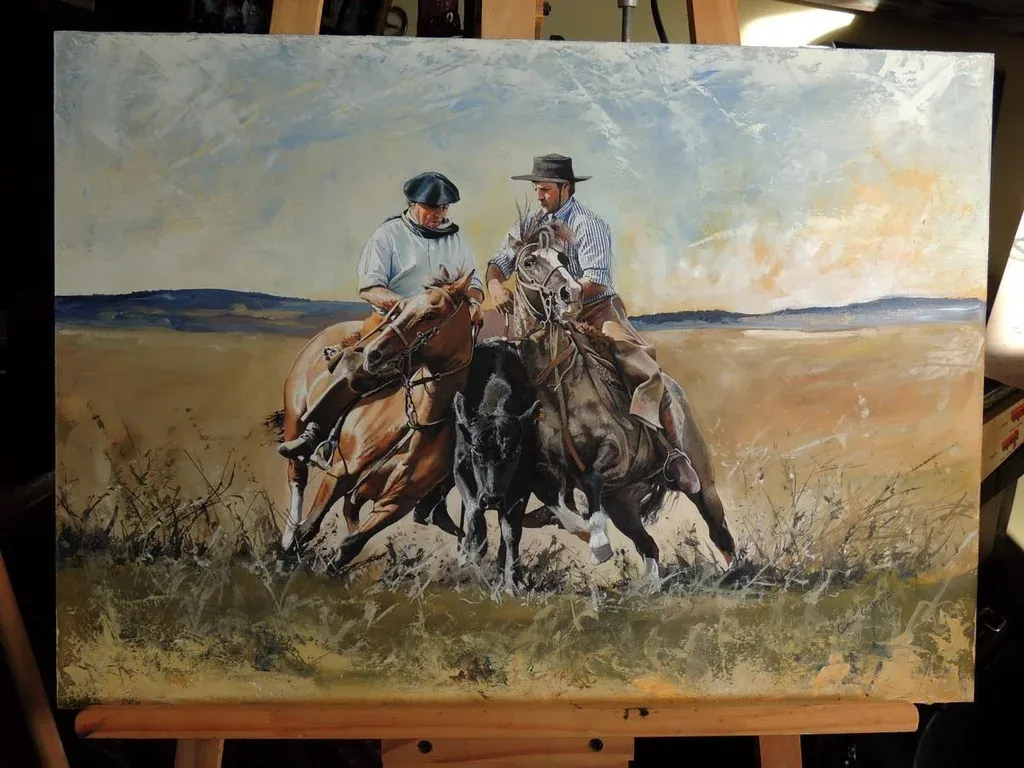“Tengo clientes que son criadores, muchos que pertenecen a la ARU, incluso el nuevo presidente (Cortabarría) tiene cuadros míos con animales Hereford suyos”, contó.