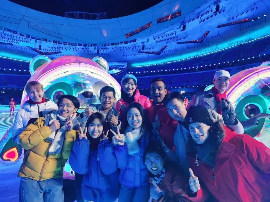 Lucas con los demás voluntarios La ceremonia de apertura de los Juegos estuvo a cargo del director de cine Zhang YiMo, el mismo de los Juegos de Beijing 2008. “Lo que hice básicamente fue practicar durante cuatro meses una coreografía con diferentes estudiantes de universidades, donde caminamos en línea recta representando el pensamiento de las Naciones Unidas, influenciado por el presidente Xi JinPing que busca el destino común de la raza humana con el fin de erradicar la pobreza, detener la polución y promover la educación”, expresó Lucas.
